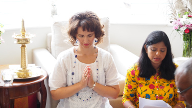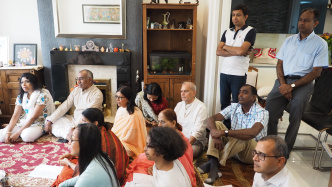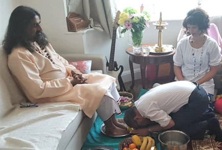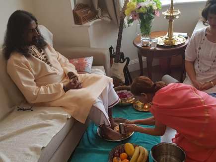 Tokom Mohanđijeve skorašnje posete Ujedinjenom Kraljevstvu, nekoliko poklonika je poželelo da izvede obred Mohanđijevu Pada Puđu. Mohanđi se ljubazno složio sa tim. U kratkom roku, ujutru 9. avgusta, ovaj program je organizovan i nekoliko poklonika se okupilo. Sa najvišim poštovanjem i posvećenošću, poklonici su organizovali sve potrepštine za ritual. Cveće, dipam (lampa), vodu, turmerik vodu (voda sa kurkumom) i kumkum vodu (voda sa crvenim prahom kurkume), voće, suvo voće, sve je bilo spremno.