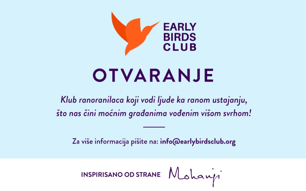 Inspirisan Mohanđijem, 23. aprila 2020, pokrenuta je globalna inicijativa “Early Birds Club – Klub ranoranilaca” koji vodi ljude ka ranom ustajanju što nas čini moćnim građanima vođenim višom svrhom!